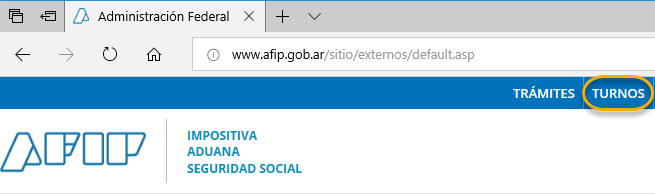 2. Indicamos la dirección www.afip.gob.ar en la barra de direcciones del visualizador de Internet.