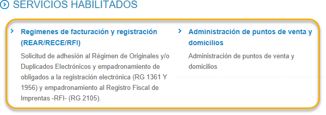 a) Buscamos y hacemos clic en el servicio “Regímenes de facturación y registración (REAR/RECE/RFI)”; y/o.