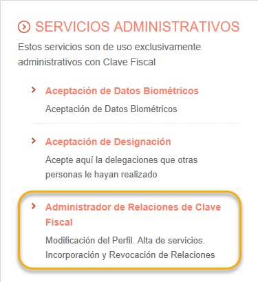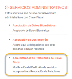 1. Hacemos clic en la opción Administrador de Relaciones de Clave Fiscal de la sección “Servicios Administrativos”.