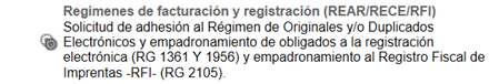 a) Regímenes de facturación y registración (REAR/RECE/RFI); y