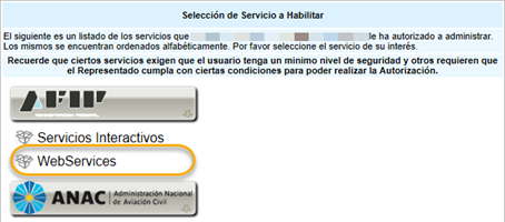 Ahora, verificamos la disponibilidad o adherimos los siguientes servicios de la AFIP: