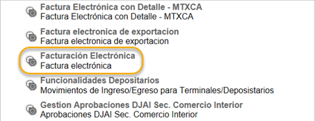2.d) Buscamos y hacemos clic el servicio Facturación Electrónica.