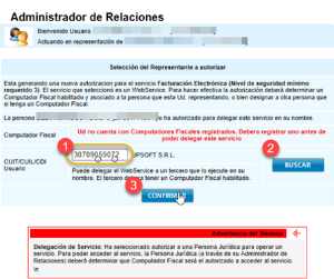 Para delegar la Facturación electrónica a UpSoft S.R.L. seguimos los pasos anteriores hasta completar el Paso 3 para volver a ingresar al website de la AFIP.