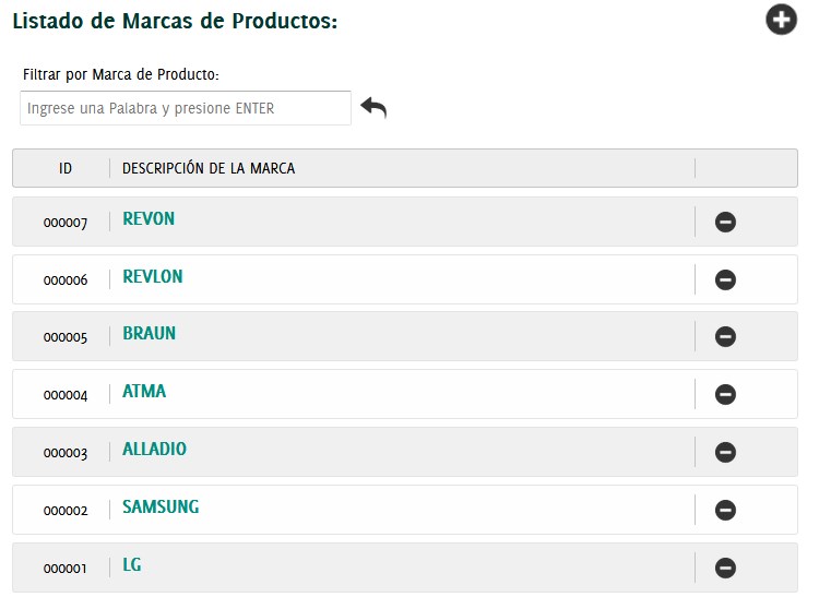 Al lado de cada registro hay un icono con el signo – el mismo se utiliza para suprimir un tipo de producto.