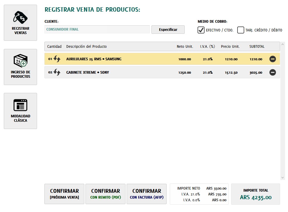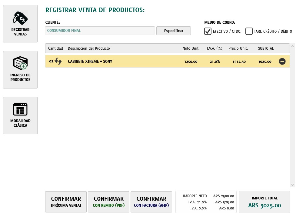 Se puede confirmar venta Actual y cargar una nueva nueva venta Mediante el boton Confirmar (Proxima Venta)