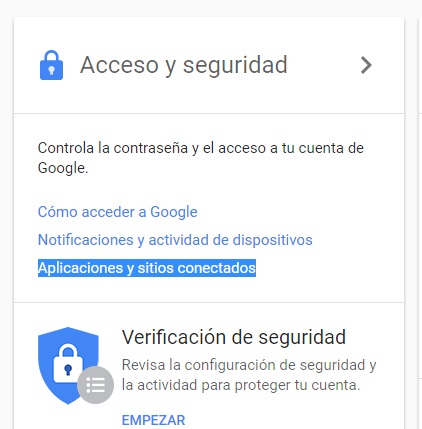 En el apartado Acceso y seguridad, hacer clic en Aplicaciones y sitios conectados.