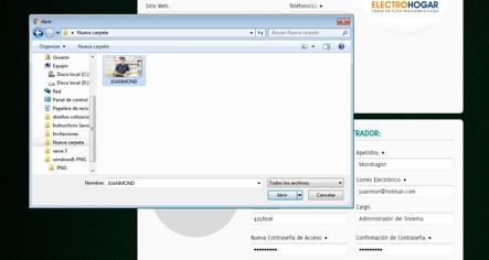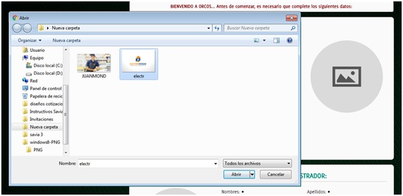 De forma automática se abrirá una ventana para que seleccione el archivo de la imagen, debe buscar en la ubicación de su pc donde se encuentra el foto del usuario.
