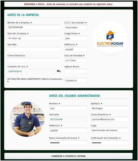 Finalmente quedara Cargado todos los datos de la empresa y del usuario administrador de la siguiente manera.