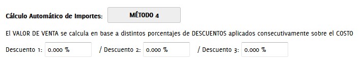 Método 4 (POR PARAMETRIZACION DE SISTEMA): El VALOR DE VENTA se calcula en base a distintos porcentajes de DESCUENTOS aplicados consecutivamente sobre el COSTO
