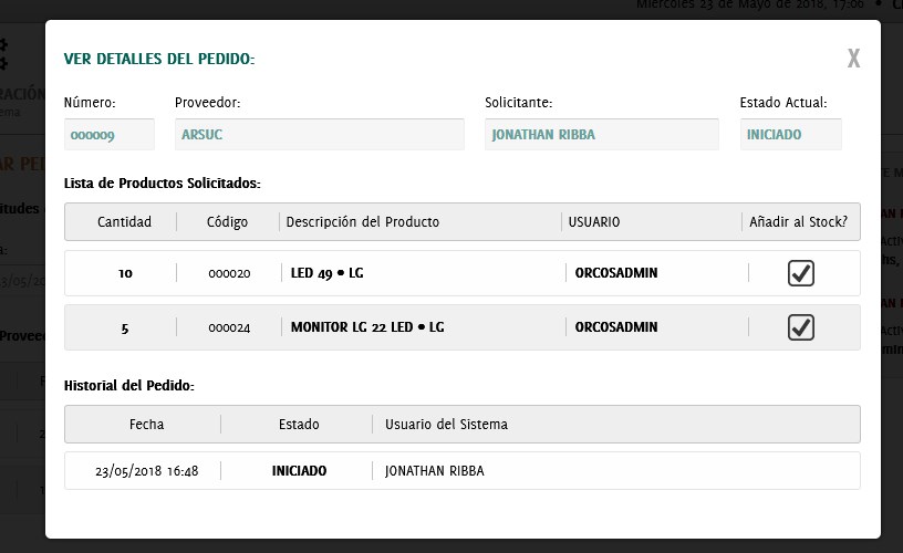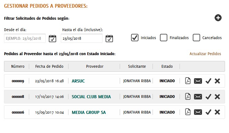 Una vez guardado, el sistema vuelve a la listado de pedidos a proveedores.