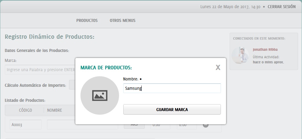 Buscamos la Marca del producto, en el caso de no encontrase la derecha del campo tenemos un icono para agregar una nueva