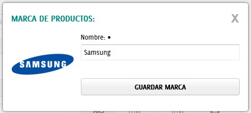 Completamos con el nombre de la marca, si queremos cargar el logo hacemos clic en el icono de cuadro situado del lado izquierdo.